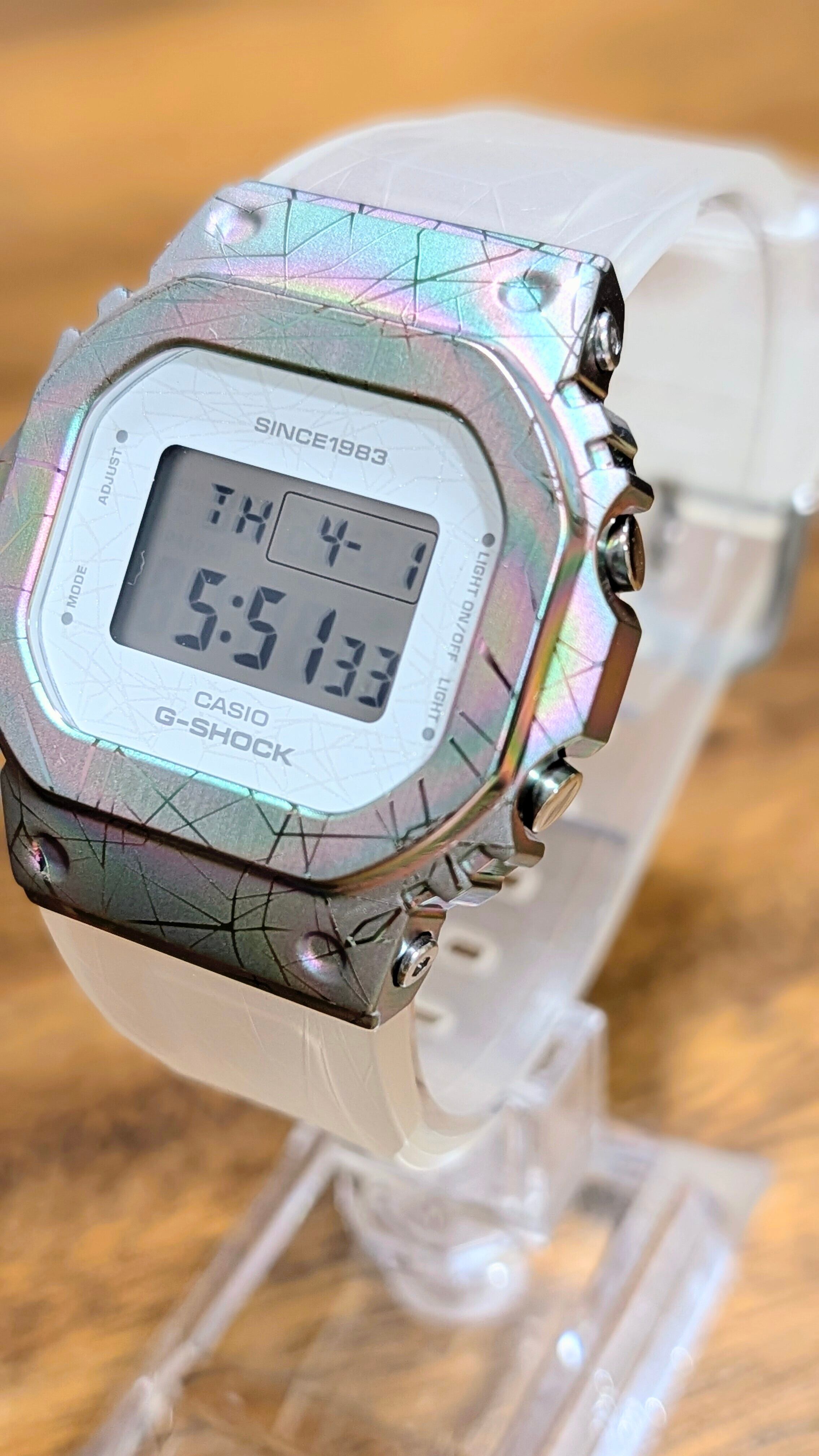 GM-S5640GEM-7は、G-SHOCKの誕生40周年記念モデル「Adventurer's Stone(アドベンチャーズストーン)」シリーズの一つです。ベースモデルはスクエアタイプのGM-S5600で、通常モデルよりも小ぶりなサイズが特徴です。
