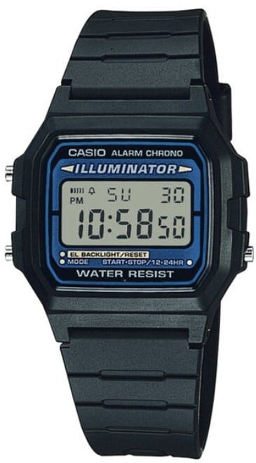 言わずと知れたカシオの代表的なロングセラーモデルです。シンプルで無駄のないデザインと機能、そして驚くほどの耐久性と手頃な価格で、世界中の人々に愛されています。バックライトは昔ながらのサイドライトで、文字盤の左側が光る仕様です。