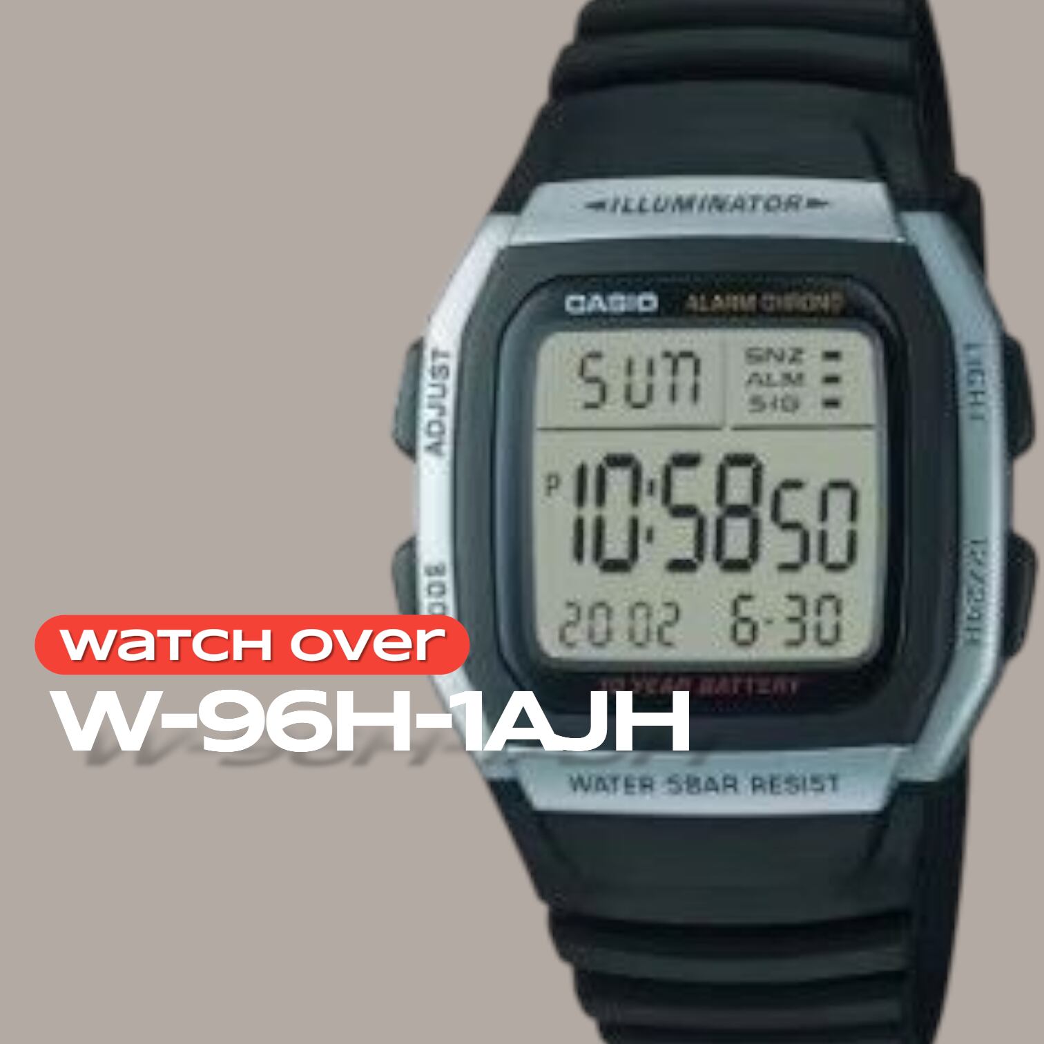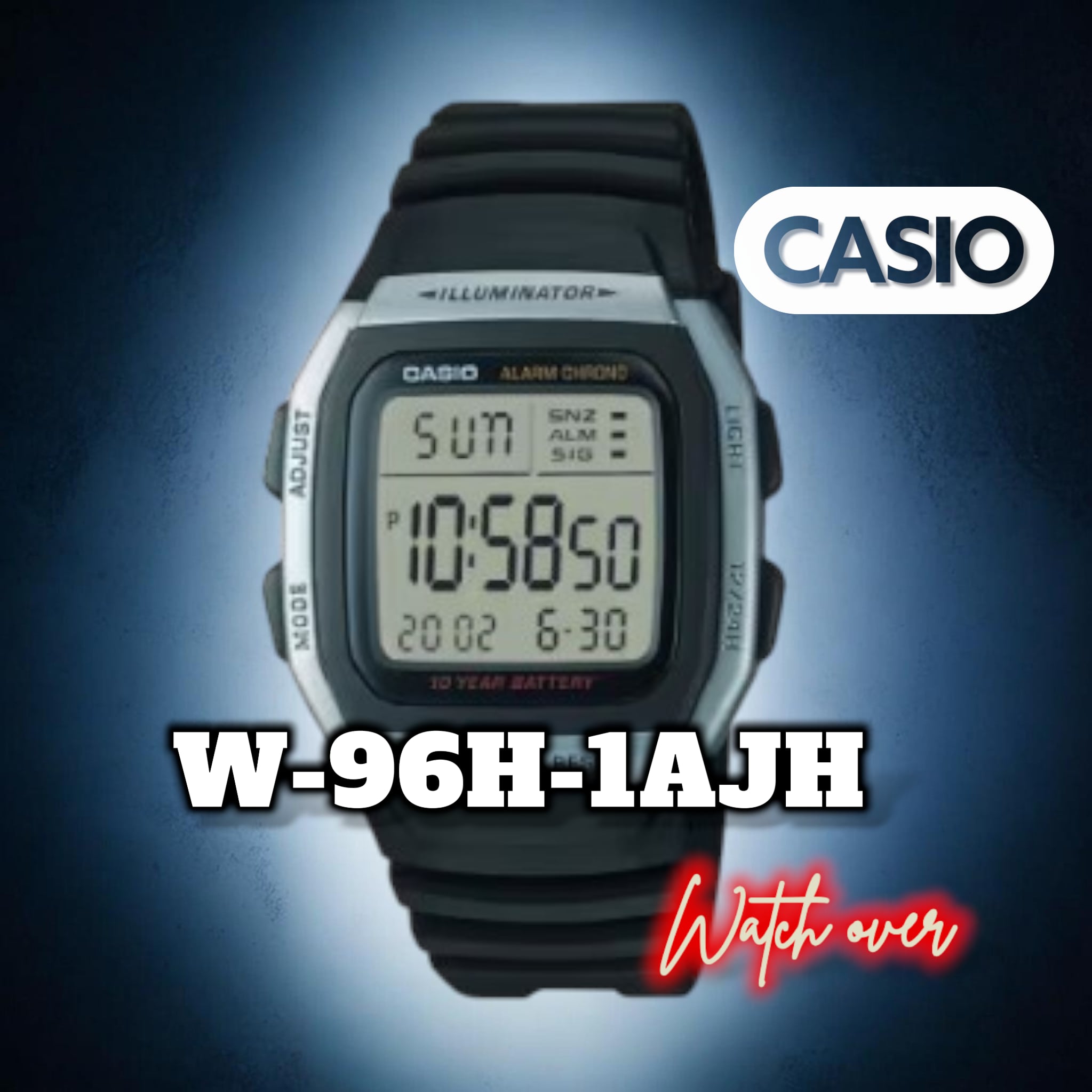 カシオの定番デジタルウォッチ「W-96H-1AJH」です。シンプルで飽きのこないデザインに、普段使いに便利な機能を凝縮した、コストパフォーマンスに優れたモデルです。