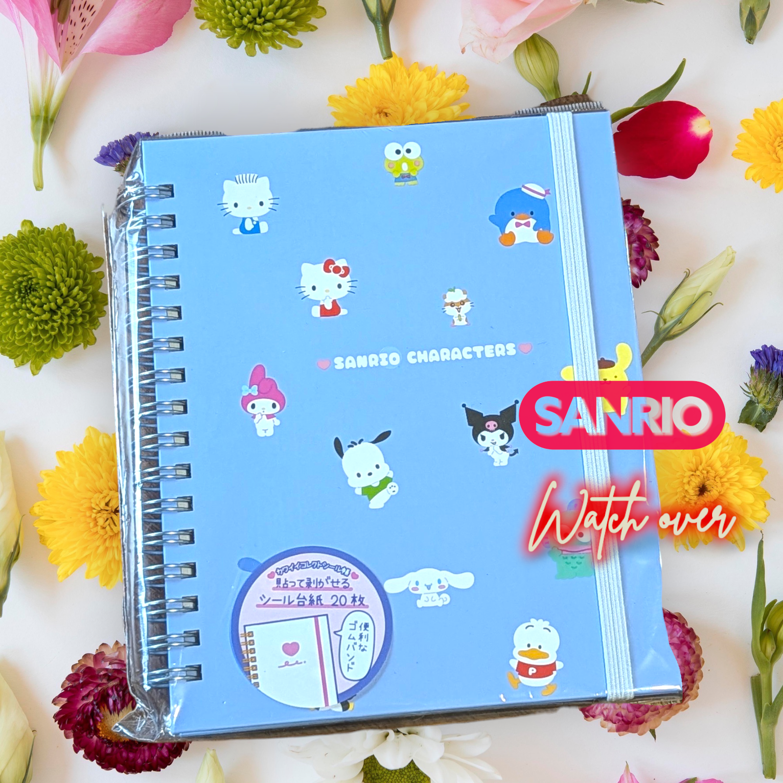サンリオの人気キャラクターが大集合した、持ち運びに便利なリングタイプのシール帳4種です。